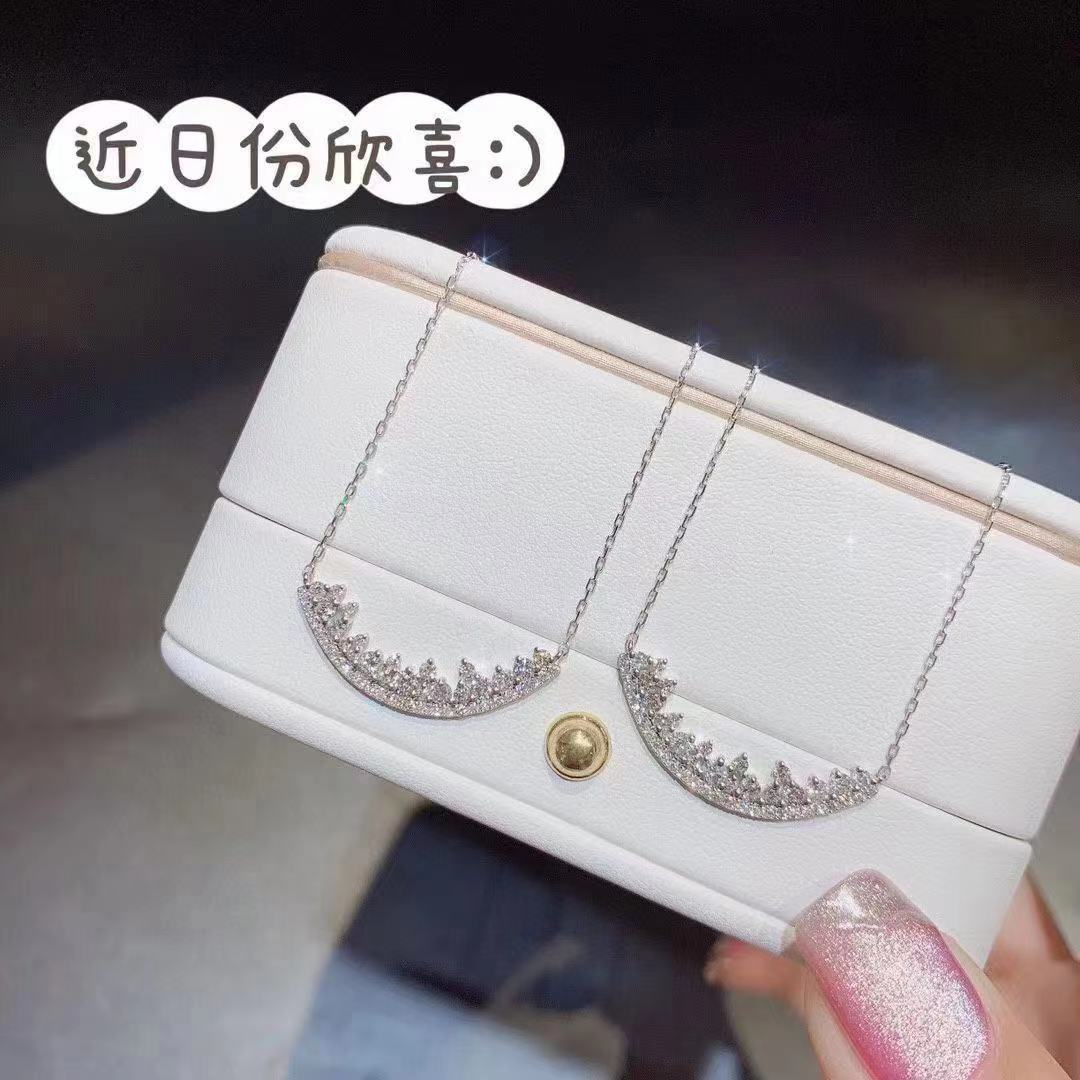 Silver Sweet V Tooth Edge Crystal Diamond Chain, Female Simple Light Luxury Smile Necklace Design, Adjustable Necklace Design